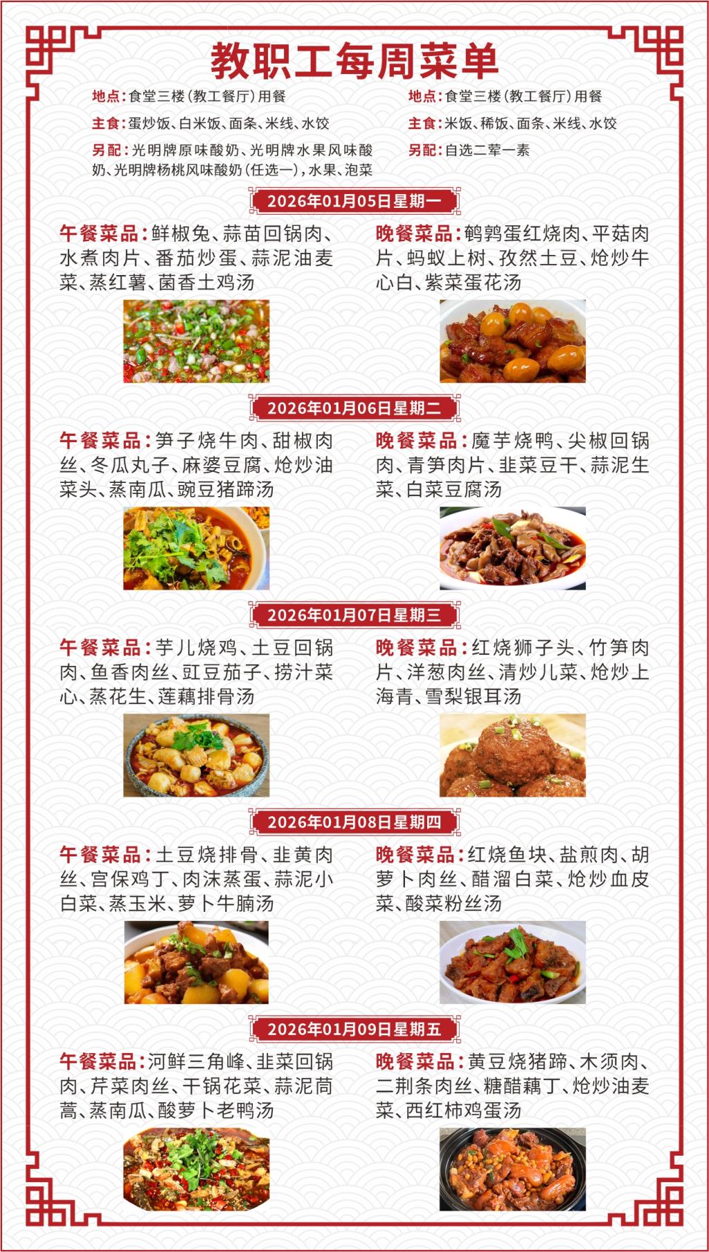 一、如遇就餐人员变化,原材料采购等原因,每日供应菜品以实际呈现为准;