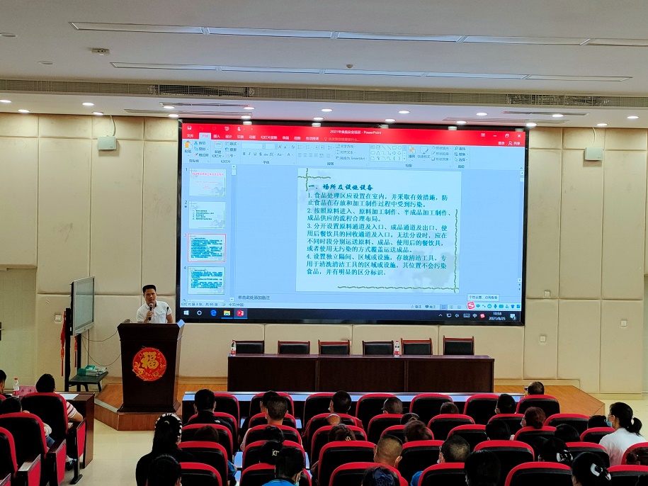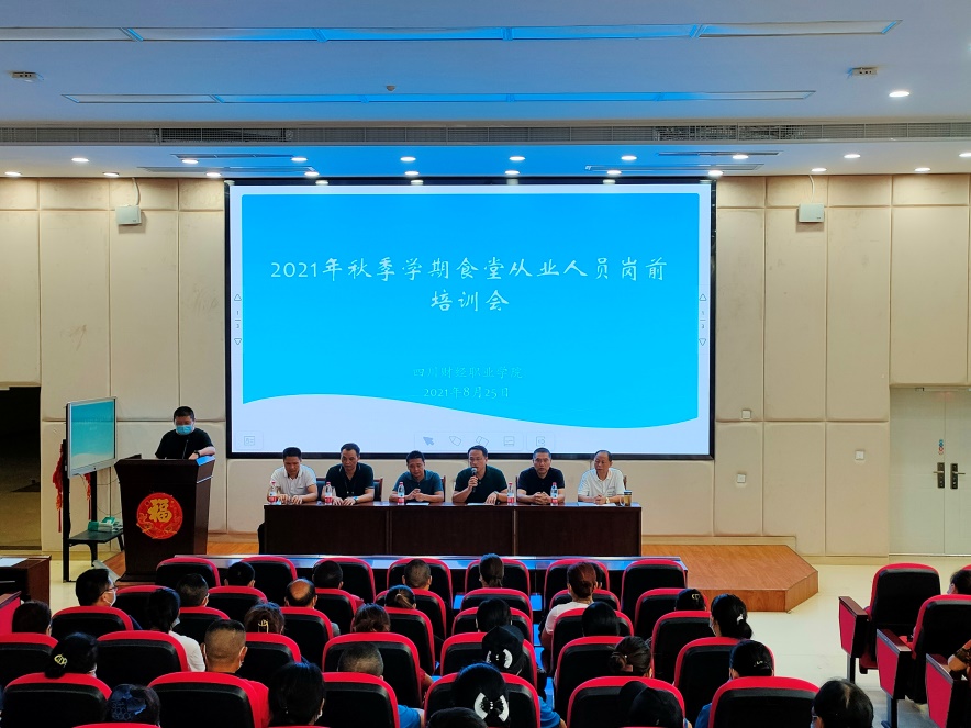 为消除食品安全工作人为隐患,筑牢食堂从业人员食品安全意识,保证学院食品安全工作,确保校园安全稳定,2021年8月25日上午,由后勤服务中心牵头,在至诚楼212会议室举行了学院秋季学期食品安全工作大会暨食品安全知识专题培训,龙泉驿区市场监督管理局领导莅临大会指导工作,同时还聘请了龙泉驿区市场监督管理局专家,对学院餐饮从业人员开展了食品安全知识的岗前培训。