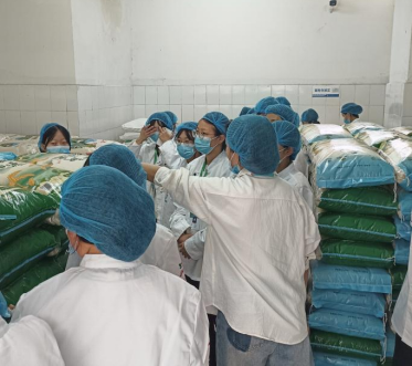 在膳食及食品安全管理科老师带领下,同学们按照食堂卫生着装要求更换工作服后,深入食堂后厨,沿食堂日常生产流程进行参观,先后参观了食材库房、蔬菜清洗间、白案加工间、蔬菜切配间、肉类加工间、烹饪间、留样间、餐具清洗间及消毒间等。参观期间,同学们在库房检视了食材的品质和储存规范,陈翀老师详细介绍了学生食堂的原材料采购、存储和食品加工制作流程、标准要求及食品安全监控平台的智慧化管理模式,让同学们对食堂的日常工作有了更加直观的感受。