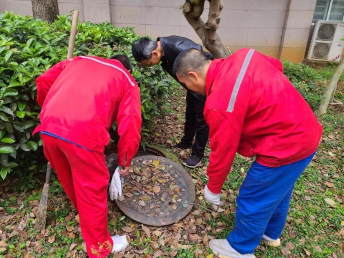 在检查过程中,学校后勤服务中心组织物业人员对校园内的排水管道、雨水口、雨水井等设施进行了详细的排查。工作人员通过实地查看方式,对全院排水系统进行全面彻底的清理,对于发现的问题和隐患,及时采取措施进行修复和改进,确保排水系统的正常运行。