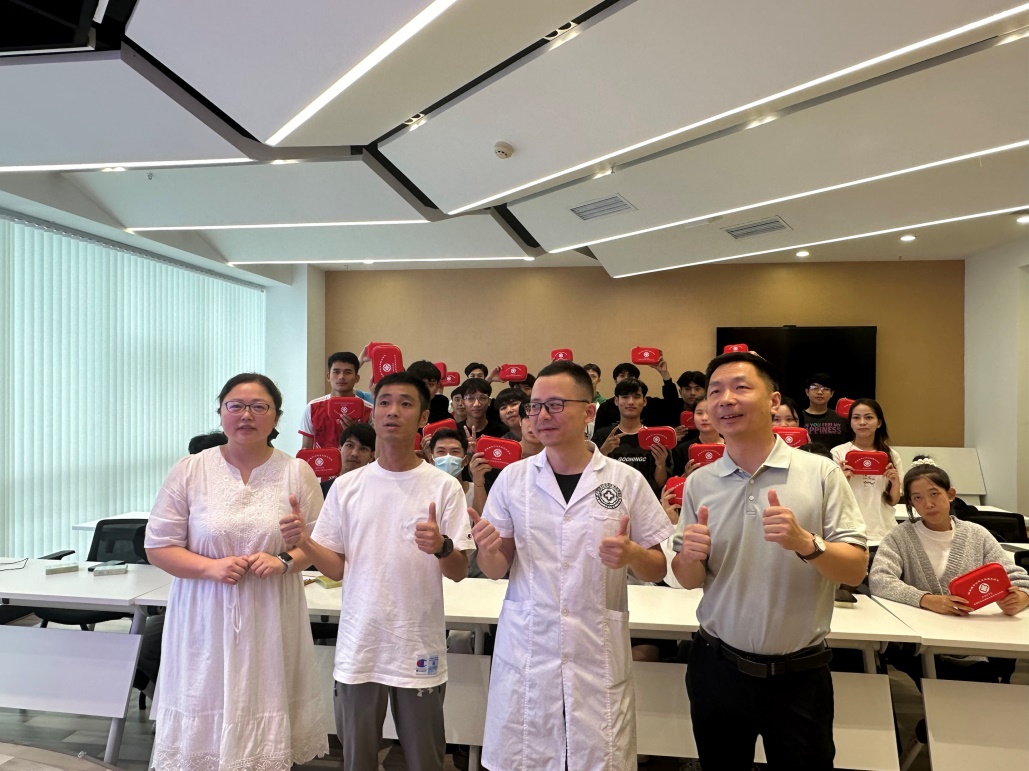 讲座中,同学们认真听讲,积极互动。专家现场演示正确佩戴口罩步骤,七步洗手法等,同学们积极响应,现场氛围热烈而有序。讲座后,我院联合成都市龙泉驿区大面公立卫生院向每位老挝籍国际生赠送了个人健康急救包。