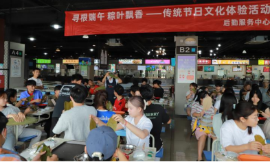 “端午节”是中华民族传统节日,也是中国首个入选世界非遗的节日。为弘扬中华传统节日文化和饮食文化,加深学生对端午传统节日的认知,深化后勤“服务育人”的工作理念,后勤服务中心于2024年6月4日举办了“寻根端午 粽叶飘香”传统节日文化体验活动。本次活动在学生二食堂(沁香苑)举办,后勤服务中心主任文洁、膳食及食品安全管理科、30名老挝籍国际生和36名二级学院学生代表参与了本次活动。