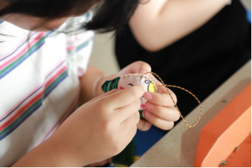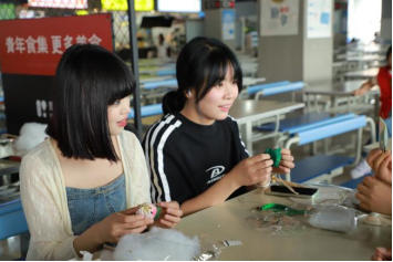 在艾叶香囊制作环节,在锻炼学生动手能力的同时,也对“端午插艾”佩香囊的习俗进行了科普。
