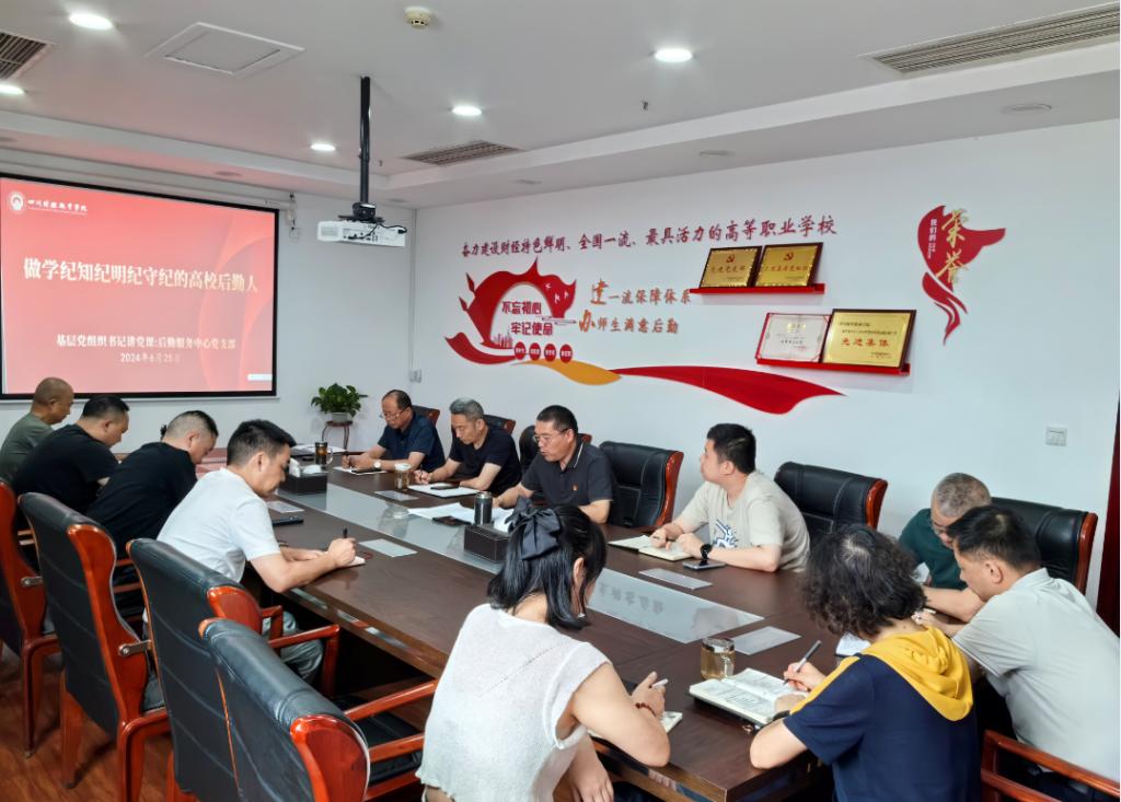 根据学院《关于开展基层党组织书记讲纪律党课的通知》要求,后勤服务中心党支部于2024年6月25日下午在明德楼1105会议室组织开展了以“做学纪知纪明纪守纪的高校后勤人——学习贯彻《中国共产党纪律处分条例》”为主题的党纪学习教育专题党课,党纪学习教育工作专班办公室张然老师列席指导,党支部全体党员参加了本次专题学习。