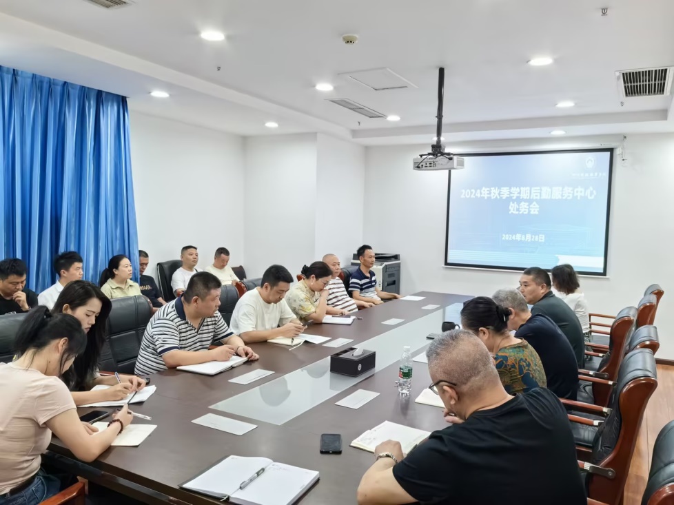 8月28日上午,后勤服务中心在明德楼1105会议室,召开2024年秋季学期后勤处务会议。会议总结暑期工作成 果,安排迎新工作,部署新学期的工作计划,确保新学期后勤保障工作的顺利进行。后勤服务中心主任文洁、副主任黄宏斌及后勤全体工作人员参加会议,物业公司两名工作人员列席会议,会议由主任文洁主持。