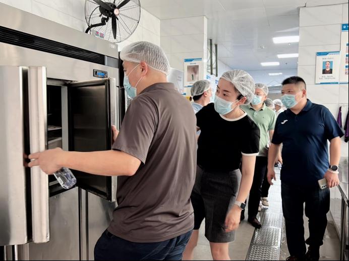 交流会后,成都轨道资源经营管理有限公司(成都轨道交通职业学院)代表到食堂进行了实地参观,双方就食堂流程布局、食品供应、员工配置、运营情况等展开了讨论,分享了双方的管理模式异同点,双方还就如何提高现场运营效率进行了探讨,提出了很多实用的建议。双方均表示要进一步加强两校间食堂管理工作联动沟通机制,互学互鉴,不断提升食堂管理水平和管理能力,进一步保障在校师生“舌尖上的安全”。