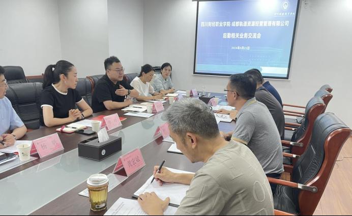 2024年9月25日上午,成都轨道资源经营管理有限公司(成都轨道交通职业学院)工会主席兼人力资源部部长李玲、餐食服务中心总经理邹家扬、餐食服务中心副总经理杨帆等一行7人到校进行了相互交流、学习。副院长钟用、后勤服务中心主任文洁、后勤服务中心副主任黄宏斌、膳食及食品安全管理科刘挺、陈翀参加了本次交流。