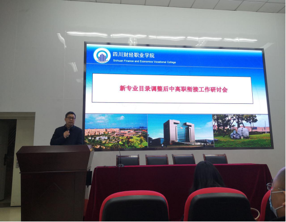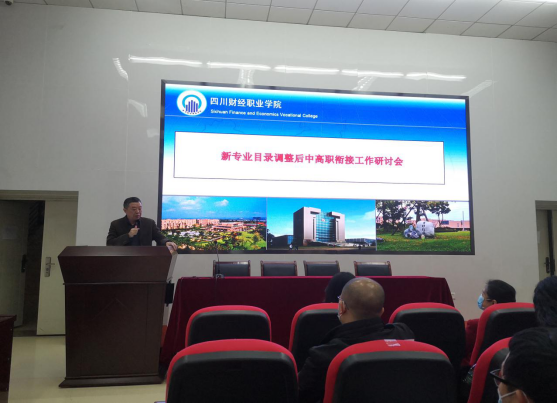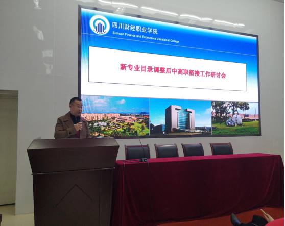 为应对新专业目录调整对中高职衔接工作的冲击,3月8日,由四川财经职业教育联盟主办,7790cnm必发集团承办的新专业目录调整后中高职衔接工作研讨会在我院成功举行。学院副院长(主持工作)符刚、副院长易思飞等领导和28所中职学校教师代表参加会议。会议由对外合作处处长叶剑明主持。
