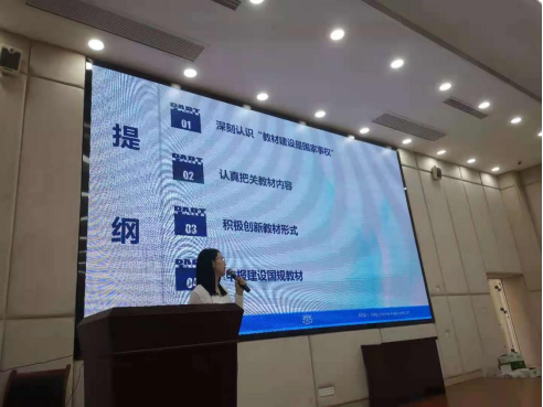 高等教育出版社上海出版事业部分社长毕颖娟分享了新时代职业教育教材建设的思考。她提出,要深刻认识“教材建设是国家事权”,“课程思政如盐在水”。她还阐述了高教社积极创新教材形式的发展历程,引出“数字教材”等全新概念。就教师们关心的申报建设国规教材给出了宝贵建议。