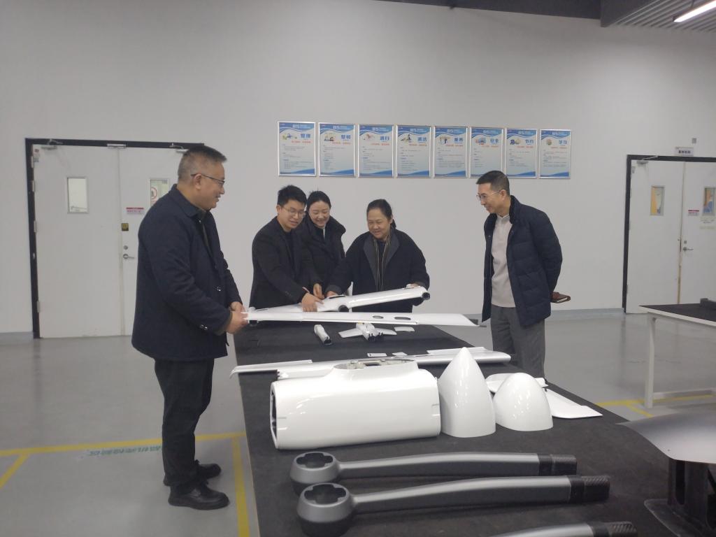 在纵横公司副总经理王陈、纵横无人机学院教学部部长梁涛陪同下,调研团队参观了公司产品展厅及无人机生产制造车间,详细了解企业发展历程与最新技术成果。调研最后,王陈代表公司向学校授予“双师型”人才培养基地牌匾,希望进一步加强校企合作,共同培养无人机专业人才。