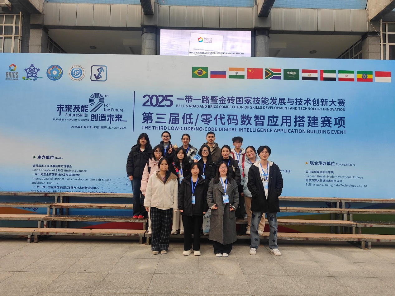 2025年11月21日—23日,“2025一带一路暨金砖国家技能发展与技术创新大赛之第三届低/零代码数智应用搭建赛项决赛”在四川省成都市四川华新现代职业学院成功举办。我校信息学院大数据技术专业代表队凭借扎实的专业功底与创新的实践能力,从全国众多参赛队伍中脱颖而出,最终斩获二等奖 3 项、三等奖 9 项,充分展现了我院学子在数智应用领域的过硬素养与竞技风采。