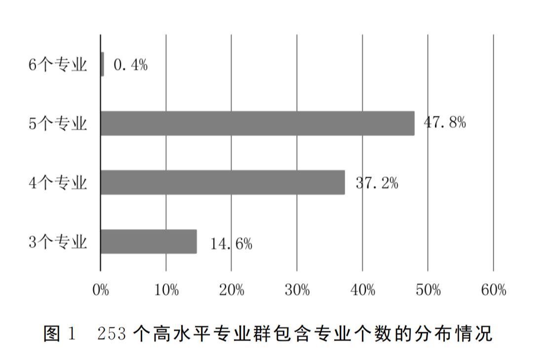 本研究首先对253个高水平专业群的申报资料进行量化统计分析,统计内容有专业群涵盖专业的个数、专业群跨专业类和专业大类的个数、专业群的组织管理跨院系的个数。尽管这些都是一些外显性特征,但对于探寻专业群组建规律依然具有重要意义。