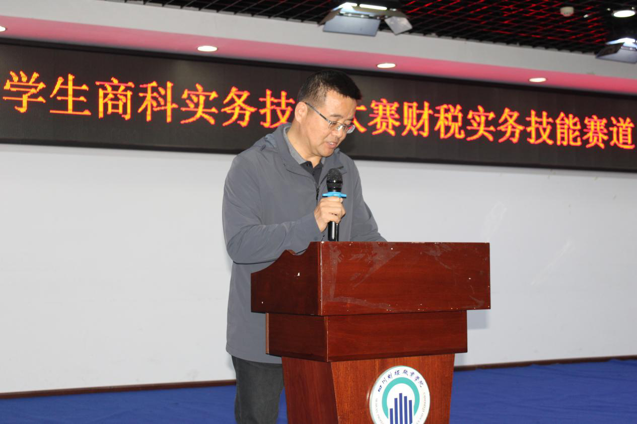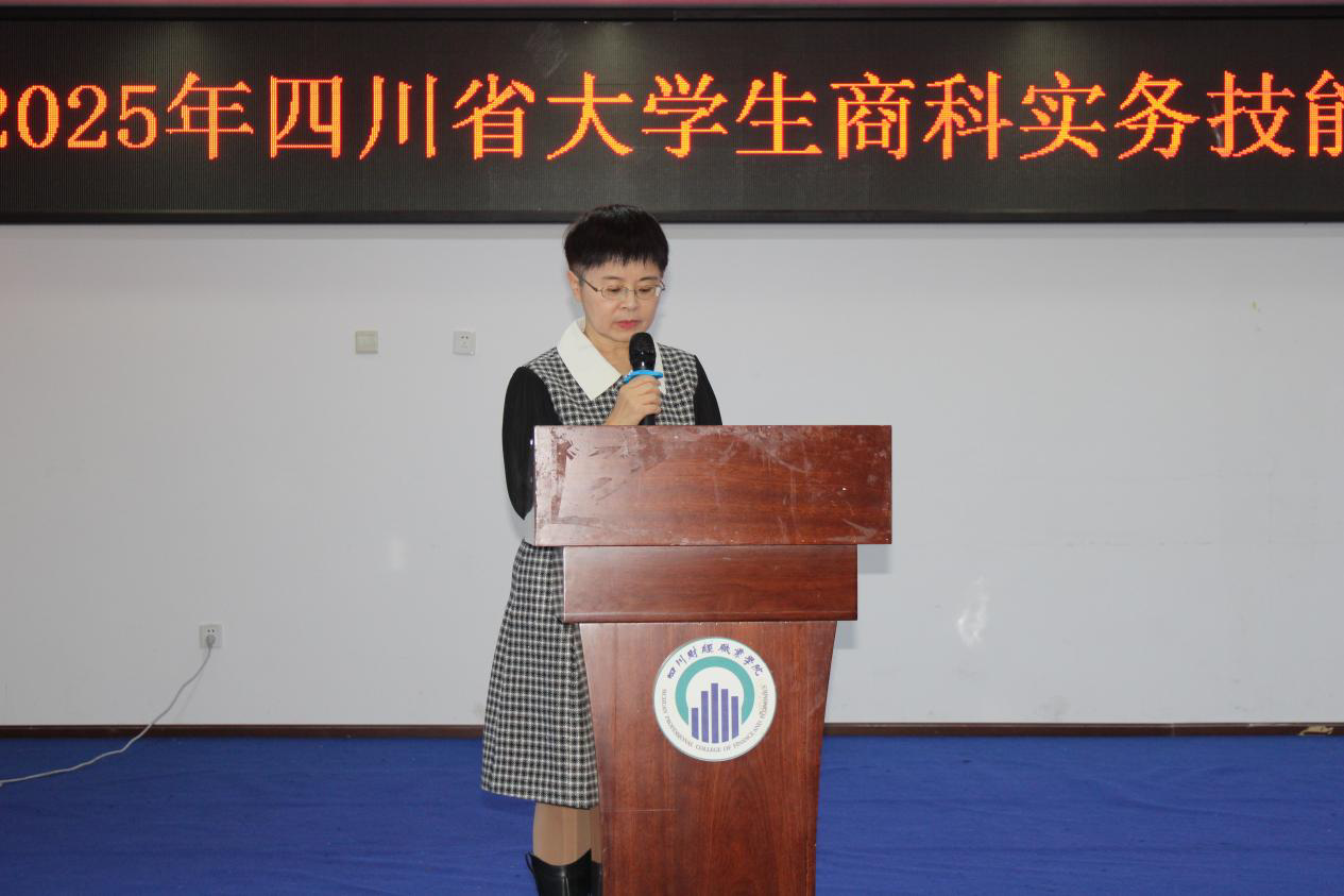 开幕式上,我校党委委员、副院长李代俊代表承办单位发表致辞,向莅临现场的领导、专家及兄弟院校师生表示热烈欢迎,向长期关心支持财经职业教育发展及赛事筹备的各单位致以诚挚感谢。她强调,四川省大学生商科实务技能大赛自2018年创办以来,已成长为省内财经领域规模大、影响力广的标杆赛事,本届财税赛道更是为提升学生专业素养、推动产教融合搭建了优质平台。