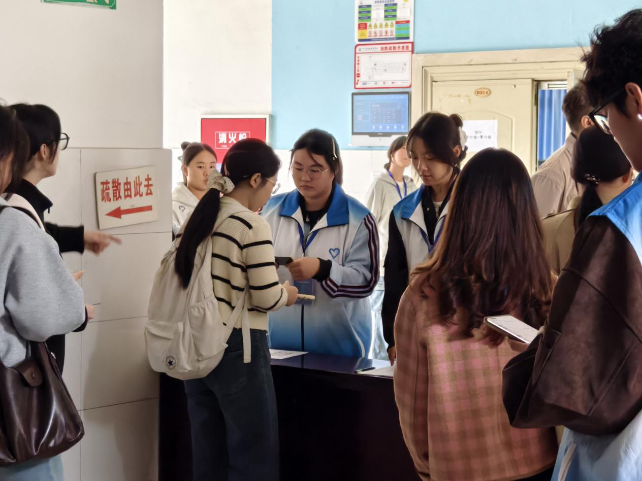 我院将志愿者分为一对一服务、宣传报道、机动三组,经过专项培训后,志愿者们身着统一服装,值守在各指示点,为选手精准指引检录及比赛路线,有效减少流程延误。下午2点,根据现场保障要求,志愿者同步做好人员引导、信息核对工作,检录环节在B栋4、5楼有序开展,工作人员快速完成选手证件查验、座位分配,以高效服务保障赛事衔接顺畅。