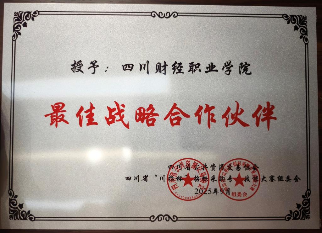 919日,2025年四川省“川招杯”招标采购专业技能大赛落幕,并举行颁奖和授牌仪式。本次大赛由中国招标投标协会主办,四川省公共资源交易协会承办,四川五洲招标代理有限公司等单位协办,全省70家单位、959名选手同台竞技,四川首届招标采购技能大赛50%以上获奖成员为我校毕业生,学校多名学子斩获佳绩。学校被授予“最佳战略合作伙伴”,财税学院党总支书记陈露参加颁奖典礼并讲话。