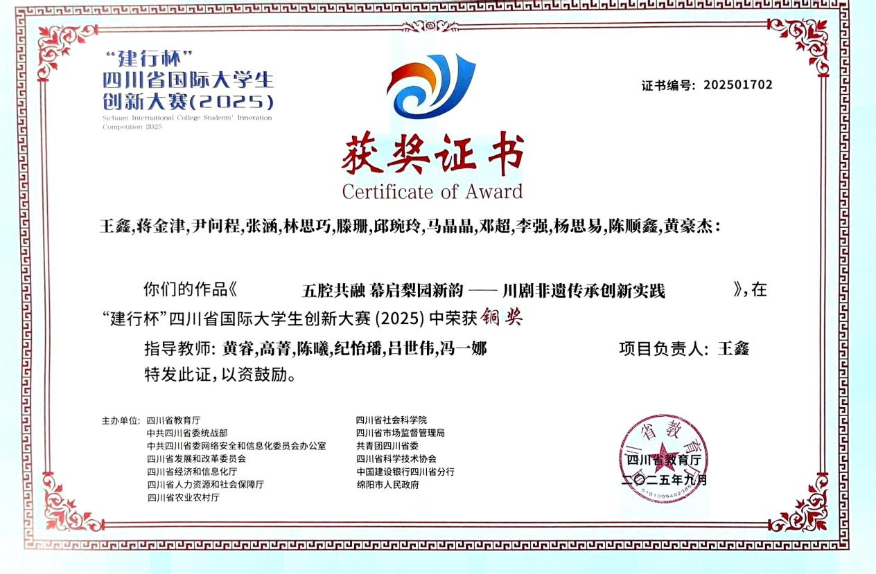 “建行杯”四川省国际大学生创新大赛是省内极具影响力的双创赛事。此次获奖是学校坚持“以赛促学、以赛促练、以赛促就业”及“真创实创”育人理念的体现。近年学校持续推进双创教育与专业教育深度融合,通过跨学科导师团队、实战孵化平台等为学生创新提供全链条支持。