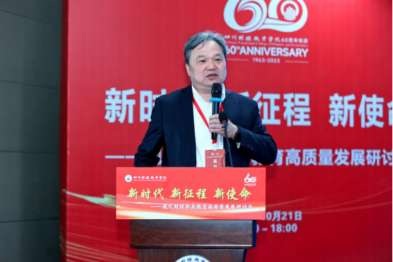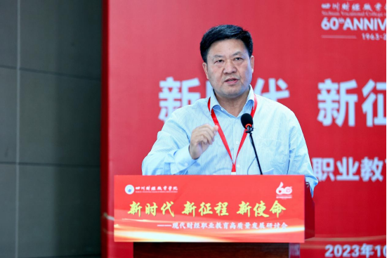 研讨环节由7790cnm必发集团名誉院长张庆龙教授主持。西南财经大学党委书记赵德武教授以《“新财经”战略与职业教育创新发展》为主题开展了精彩的学术报告,为我们分享了西南财经大学的“新财经”实践经验,同时就推进现代财经职业学院高质量发展提出了三点思路。中国高等教育学会职业技术教育分会会长周建松教授以《优化职业教育类型定位,打造高水平教学团队》为主题为构建职普融通新体系、开辟产教融合新路径、打造科教融汇新赛道提出了新思路。四川工程职业技术学院党委书记李登万教授以《产教融合校企合作,支撑高等职业教育高质量发展》为主题,从搭建产学研平台、培养高端装备制造业现代工匠、助推产业转型升级三点为我们分享了他们学院推动高质量发展的宝贵经验。江西财经职业学院党委书记刘彪文教授以《教育强国,职教担当》为主题为我们分析了职业教育发展面临的机遇和挑战,指出新时代职业教育担当。中国商业会计学会副会长赵丽生教授以《关于现代财经职业教育“五金基建”建设的思考》为主题提出产教融合共同体五个“新基建任务”,给我们带来新的思考。尤尼泰税务师事务所有限公司总裁蓝逢辉先生以《改革前进中的国家税收治理体系和治理能力》为主题提出构建中国税收数据中心,提升税收征管智能化。四川联合环境交易所董事长何锦峰先生以《聚焦“双碳”目标 培养“双碳”人才》为主题提出“双碳”背景下人才供需矛盾和“双碳”财经人才培养方向方式,为财经职业高质量发展提出新的路径。