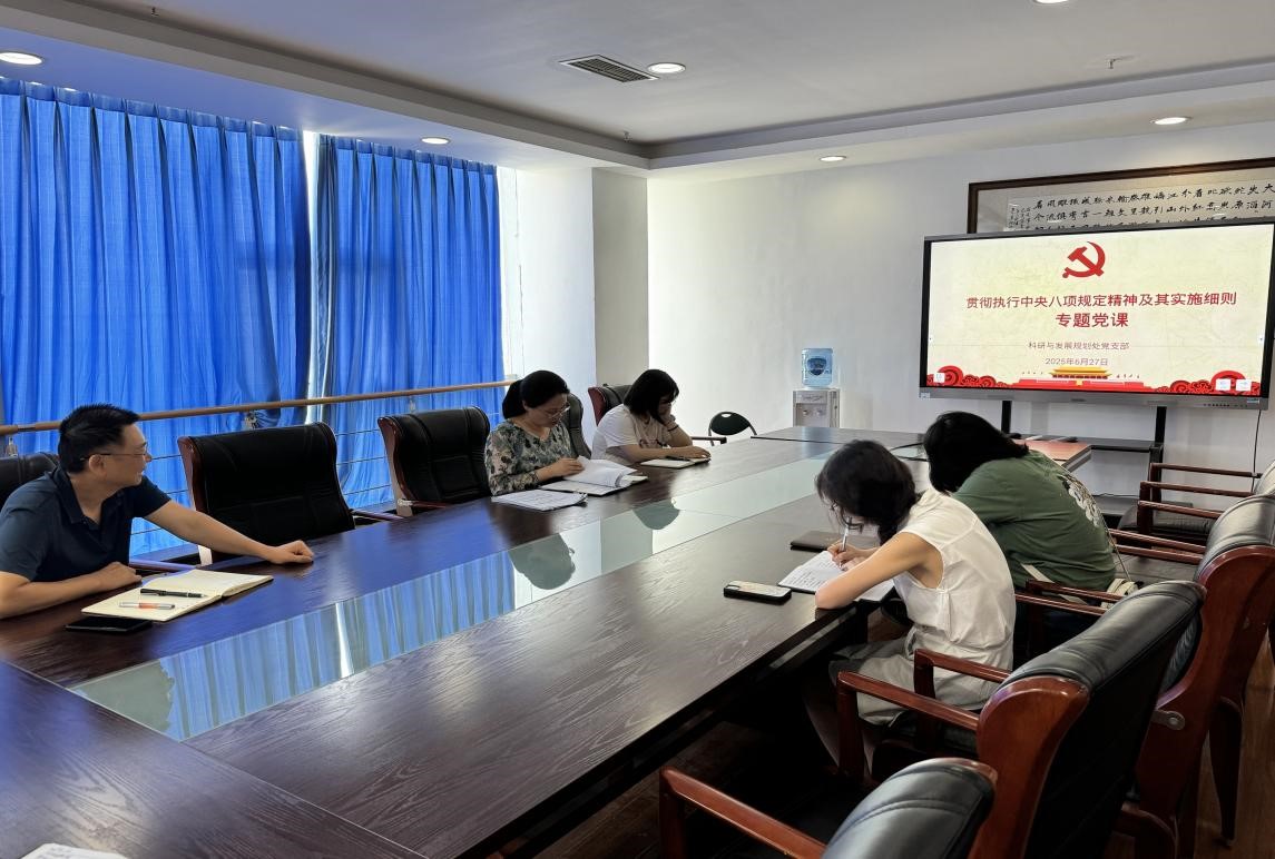 为深入贯彻落实党的精神,根据学院《关于认真做好2025年讲党课和优秀党课评选展播活动有关工作的通知》精神,科研与发展规划处党支部于6月27日在明德楼713开展了以“贯彻执行中央八项规定精神及其实施细则筑牢科研发展清廉根基”为主题的书记讲党课活动,支部全体党员参加了本次活动。