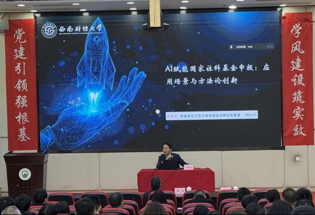 讲座伊始,吕朝凤教授以《AI赋能国家社科基金申报:应用场景与方法论创新》为主题展开授课。他从研究范式变革切入,剖析传统社科研究在数据维度、因果推断、研究效率上的痛点,系统讲解AI在选题立项、研究设计、申报书撰写、成果推广等核心环节的应用场景,并结合实操案例演示AI工具在竞争态势分析、大纲撰写、数据可视化中的使用方法,为教师提供智能化申报新思路。