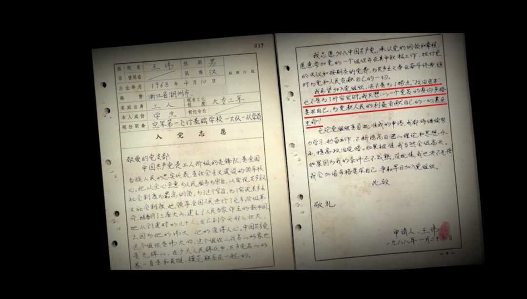 王伟曾在入党申请书中写道