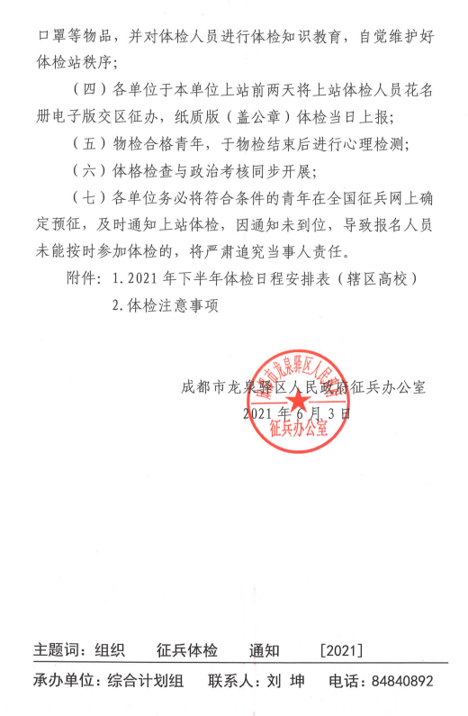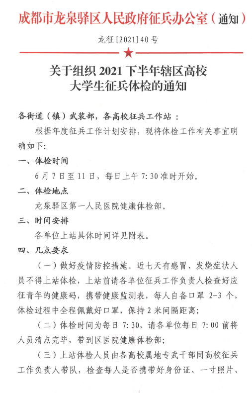 关于组织2021下半年辖区高校大学生征兵体检的通知