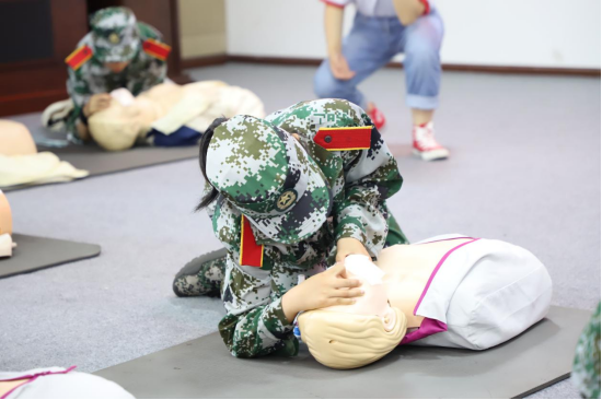 来自四川省红十字会救护培训主讲郭劼老师为同学们讲解了红十字人道主义精神,同学们听得认真、记得仔细。随后郭老师详细讲解了应急救护理念,并通过PPT、视频和现场模拟演示的方式,重点对心肺复苏、气道异物梗阻、AED的使用和创伤救护等方面进行了详细的理论讲解和现场展示。同时,老师还与参训的学员亲身实践心肺复苏和创伤救护等急救措施,手把手教授学员操作要点以及规范动作。