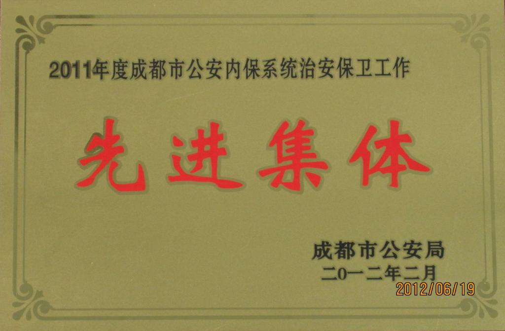 在我院上下认真贯彻中央、省市安全工作会议精神,落实学院各项安全管理制度,开展学院综合治理,集中全力抓安全保稳定,创建平安校园、创省级示范高职的关键时期,我院接受了成都市公安局、龙泉分局对学院治安内保工作的评估和考核工作,因学院安全内保工作制度完善、落实到位,成绩突出,出色完成各项安全保卫任务,考核成绩优秀,被成都市公安局评选为2011年度成都市公安内保系统治安保卫工作先进集体,保卫处文洁同志荣获成都市内保系统治安保卫工作先进个人。