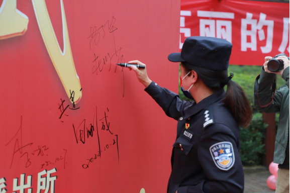 启动仪式后反诈志愿者在签名墙前签字留念