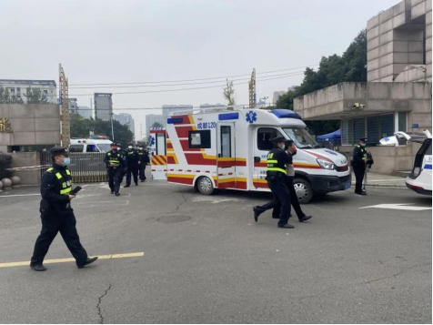 校内安保人员与歹徒周旋,蒲草村网格员发现情况迅速报警,东安派出所、东安街道综治巡逻中队迅速反应到达现场控制“歹徒”,社服中心120快速到达处理“伤员”,区特巡警迅速赶到将“歹徒”带走。