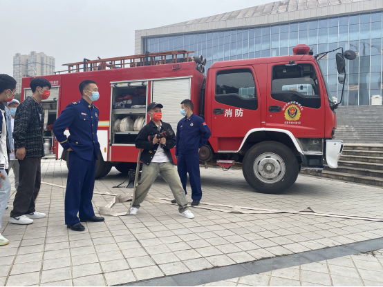 之后由龙泉消防大队消防员向同学们讲解了隔热服、抢险救援服、灭火器、消防水带等基本救援工具的作用,以及灭火器的正确使用方式,并且现场进行火灾扑救消防实战演练。