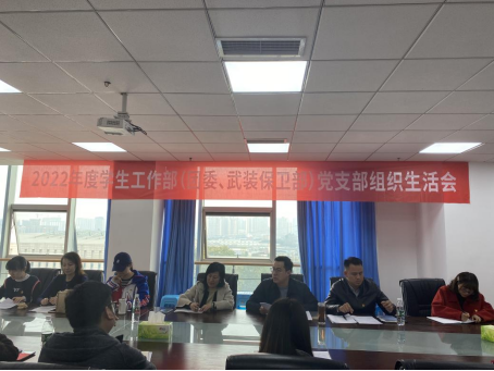 2023年3月15日下午,武装保卫党支部召开2022年度组织生活会,并开展民主评议工作。会议由党支部书记、武装保卫部副部长刘丹主持,2022年度组织生活会督导组成员通识学院院长张晋红、组织人事部江翠华及支部全体党员参加会议。