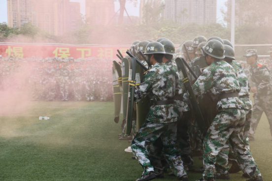 骄阳似火,淬炼钢铁军魂,砥砺前行,担当时代责任。2024级全体学生身着迷彩绿,汇聚成奋力向前的磅礴力量。