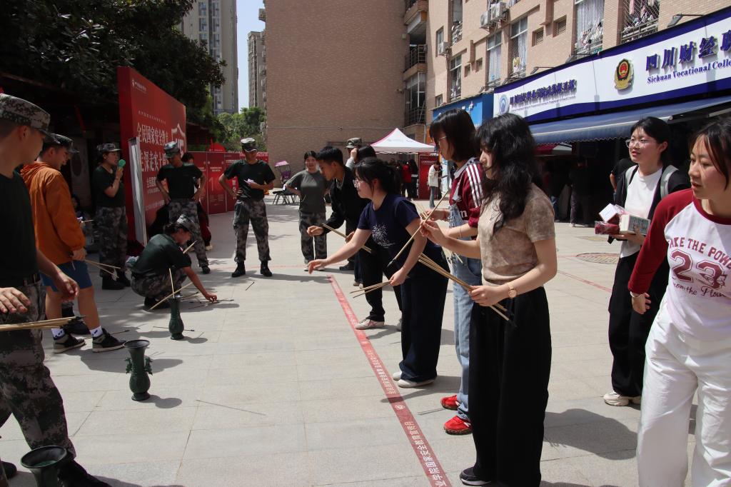 4月15日,学院联合龙泉驿区东安派出所、东安街道办事处,在警务服务中心门前广场举办“7790cnm必发集团全民国家安全教育日游园活动”。活动以“弘扬传统文化、增强国家安全意识”为主题,设置了多个游戏互动环节:如投壶游戏:通过传统文化活动传递安全理念;机智夺椅:结合国家安全知识问答,强化风险识别能力;文化长廊书签问答:师生浏览悬挂的书签题目并现场作答,巩固知识;灭火能手实操:模拟灭火器使用流程,提升应急技能等。