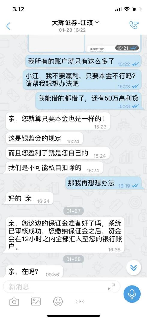 对方表示,炒股要想快速赚钱,必须得有专业“老师”带着,还要有内部的信息渠道,随即对方邀请陈某进入“内部群”学习,并要求他通过链接下载“大輝証券”APP,一起炒股。