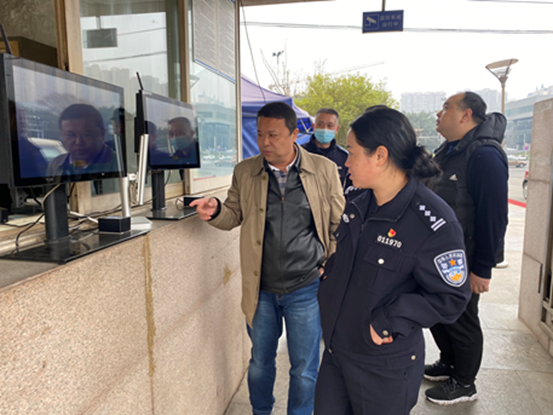 杜以萍所长一行到校门口查看人脸识别系统