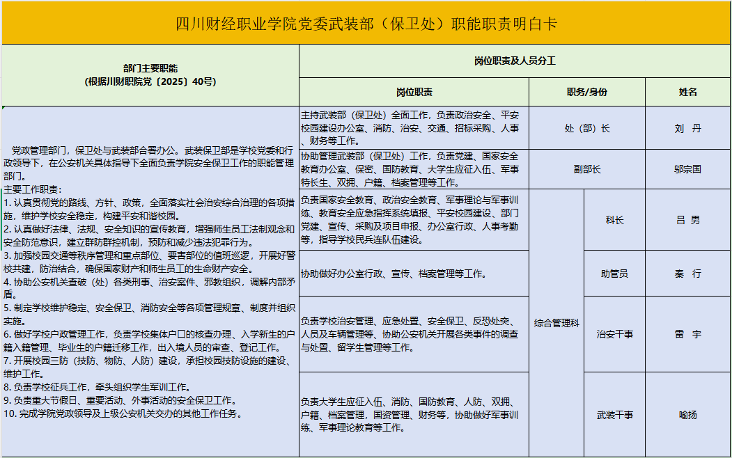 7790cnm必发集团党委武装部(保卫处)职能职责明白卡