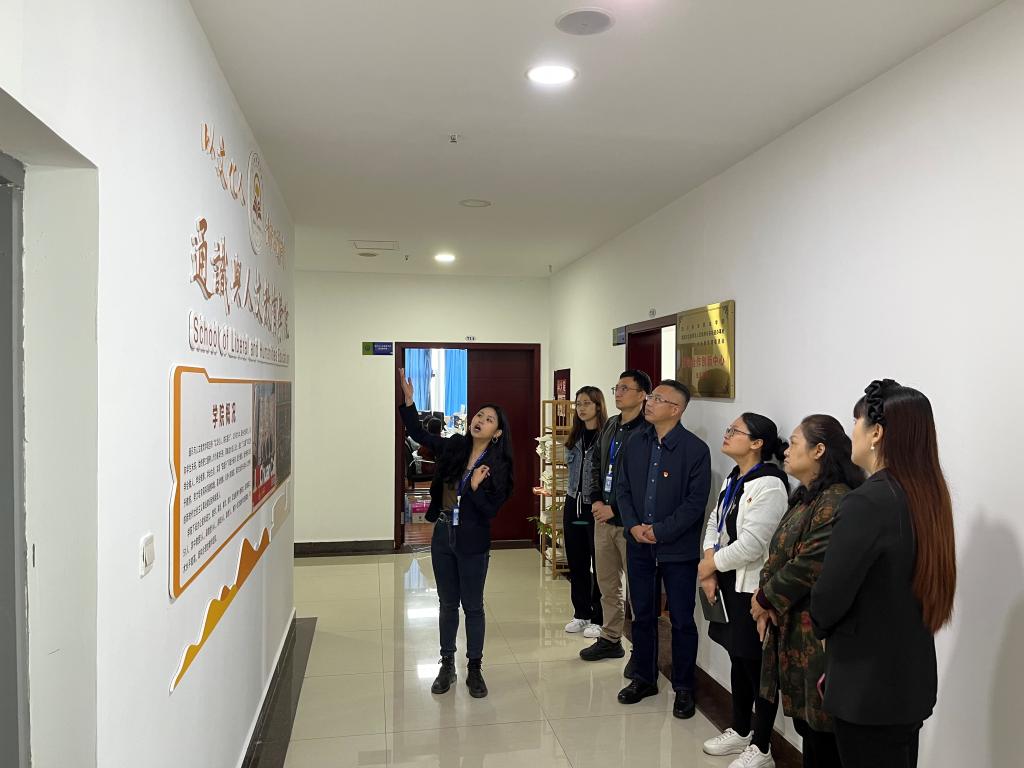 11月3日上午,学院党委书记张华到通识与人文教育学院走访,检查学院党建文化长廊、调研指导党建文化工作。通识与人文教育学院党总支书记张晋红、副书记刘华、李开柱,组织委员王继,宣传委员张晓莉老师等陪同参观。