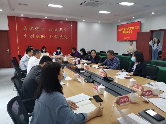 为了全面提升学院高质量服务社会水平,推进学习型社会建设,助力成都学习型城市建设。2022年3月15日下午,学院党委书记张华、副院长罗潇、通识与人文教育学院院长张晋红、马克思主义学院院长胡恒丽、图书馆(档案馆)副馆长周光林及相关工作人员赴成都经济技术开发区(龙泉驿区)东安街道开展社区教育需求调研。东安街道办党工委书记陈兵、办公室主任吴震及相关部门领导接待了张华书记一行。调研会上,宾主双方对目前社区教育的主要形式、存在的问题、社区教育需求等方面进行了深入的交流。通过调研,让我们切实了解到社区的服务需求,有利于学院找准以高校资源服务经济社会发展的突破口和着力点,学院社区的深度融合,有利于促进东安街道的“社区治理”,助力东安社区“村民变市民”工程的实施,从而实现区域经济社会发展和学院特色发展的合作共赢。