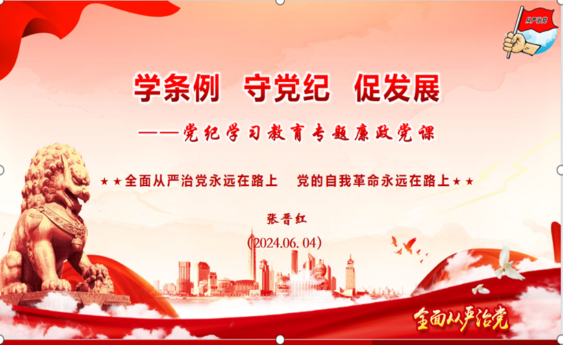 党课上,党总支书记张晋红为全体党员详细讲解《条例》修订的重要意义和主旨要义。《条例》是管党治党的重要基础性法规。202312月,党中央印发了修订后的《中国共产党纪律处分条例》,这是党的十八大以来,党中央对该条例的第三次修订,再次释放出以严明纪律管全党治全党的鲜明信号。党性、党风、党纪是有机整体,党性是根本,党风是表现,党纪是保障。坚强的党性、优良的作风、严明的纪律是我们党的鲜明特点。全体党员必须把学习贯彻新修订的《条例》作为重要政治任务,要严明政治纪律和政治规矩,要加强全方位管理和经常性监督,要敢于担当积极作为,要敢于斗争正确履职。