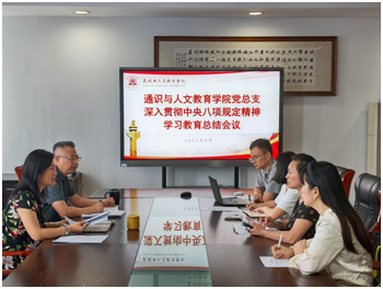 为持续巩固拓展贯彻落实中央八项规定及其实施细则精神成果,推动作风建设常态化长效化,9月16日,通识与人文教育学院党总支召开深入贯彻中央八项规定精神学习教育总结会议。会议由学院党总支书记张晋红主持,党总支全体委员参会。