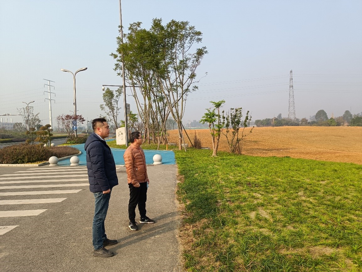 三人驱车前往洪河村所辖地,先到一处名为“麦浪田园”休闲农庄,该农庄已和洪河村签订土地租赁协议,约租用了40多亩土地,用于集垂钓、农村观光、采摘、餐饮于一体休闲经营实体,目前完成主体基础设施建设,在走访中与商家交流,建议他们加快完善设施建设,利用疫情防控政策调整的时机,尽快投入实体运营,同时还就经营思路、营销宣传与其交流意见。随后查看了两处也已被投资者承包了地块,各自也有几十亩地面,但这两处的土地使用情况还处于刚起步阶段,有一家甚至还是原生状态,没有进行充分利用。此外还有一些目前处于半闲置状态,即承包此地块的村民未耕种也未利用,由村集体投入资金按街道要求进行农作物栽种的上百亩土地,这些土地具有农田特性,需要进行耕利用,否则就会出现农田荒芜,违背农田保护利用政策。最后,三人查看了一处具有文物保护性质的川西特征的老宅基地-何家宅,该处周边地块已被征用,但此处因具有川西民居风格被保护而保留下来,目前处于闲置状态,但因年久失修有些破败,亟须投入资金进行修缮保养。