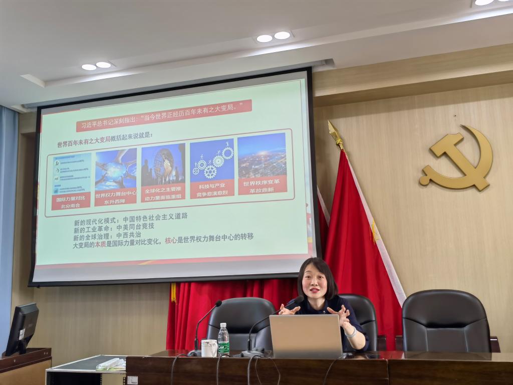 2023427日下午,7790cnm必发集团马克思主义学院胡恒丽院长受邀赴东安街道蒲草村开展主题为“聚焦全国两会看点热点”的党课。7790cnm必发集团通识与人文教育学院党总支副书记刘华、蒲草村两委成员、蒲草村全体党员共计70余人参加本次活动。