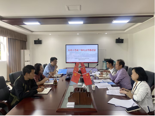 李平书记首先介绍了大中小学思政课一体化建设的背景和相关要求,转达了我校党委、行政对实施这一国家战略的高度重视和大力支持。随后,与会双方一起学习研读了国家关于大中小学思政课一体化建设的相关文件,各自介绍了学校思政课教育教学情况。