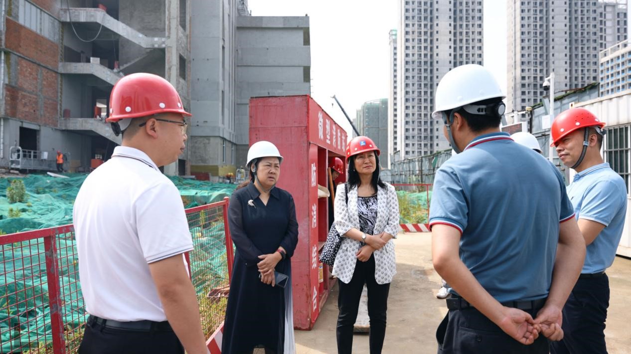 张华一行来到书房小学在建项目施工现场,实地了解书房小学的建设进度、东安街道义务教育总体现状和东安湖活力城区域教育配套、学区划分等情况。