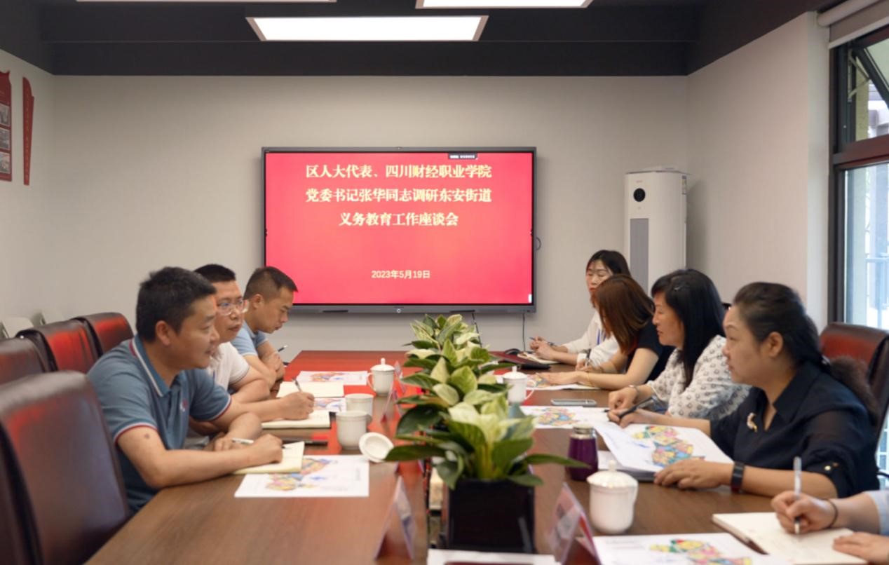 在随后召开的座谈会上,东安街道书房社区、顶佛寺村、平安村、东安湖社区相关负责人分别向张华同志介绍本辖区义务教育发展现状和所面临的部分教育资源不均衡问题。会上就高校领办辖区幼儿园(小学)等可行性解决方案展开了深入探讨,与会人员共同为助推东安街道义务教育高质量发展建言献策。