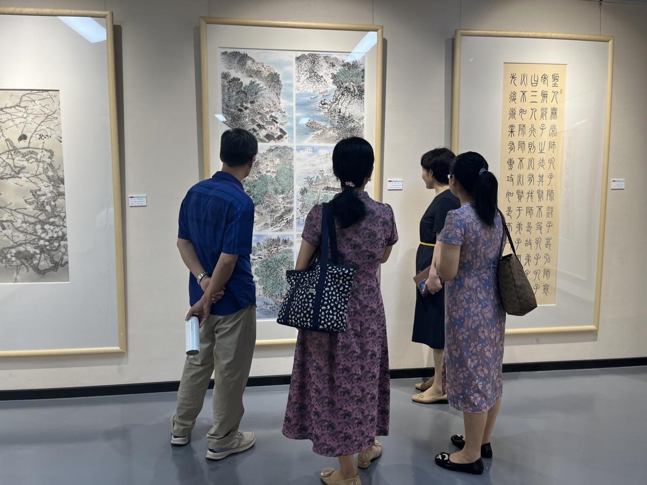 交谈会结合,在赵处长的带领下,参观了关山月中国画学院民族美术专业2023届毕业作品展、校园微景观、茶艺室、广州近现代书法研究所,体验传统文化,感受传统文化之美。