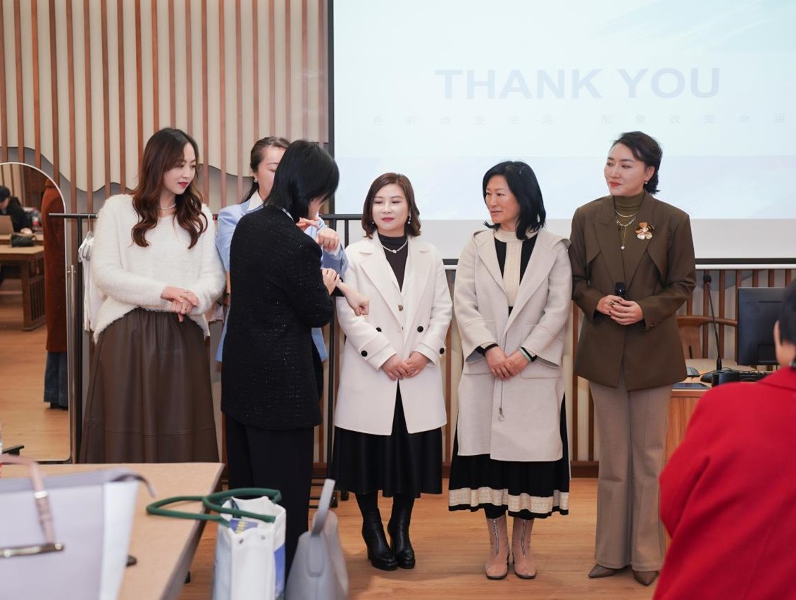 胡蝶老师根据测试者测出的不同季型,进行有针对性的着装搭配。通过精准的季型分析,讲师们为几名参与者量身定制了个性化着装建议,使他们能够更好地理解自己的色彩特点,以及如何在日常着装中展现最佳的个人形象。