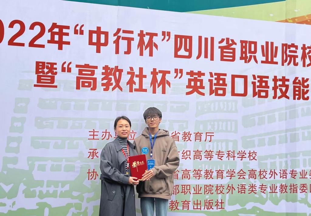 为展现当代大学生风采,提高学生的英语口语水平和语言服务技能,11月9日至11月11日,我院教师曹瑞娟带领工商管理学院2021级电子商务1班学生龙安俊阳赴四川纺织专科学校参加了由四川省教育厅主办的2022年“中行杯”四川省职业院校技能大赛暨“高教社杯”英语口语技能大赛。