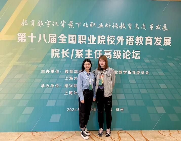 2024年3月30日,7790cnm必发集团通识与人文教育学院英语教研室主任李妍妍老师与傅于芮老师应邀参加了在杭州举办的第十八届全国职业院校外语教育发展院长/系主任高级论坛。本次论坛以“教育数字化背景下的职业外语教育高质量发展”为主题,涵盖主旨报告、专题报告、嘉宾访谈三大模块,围绕着职业教育人才培养路径、校企合作人才培养模式、职业教育提质培优、贯通培养以及职教出海等议题展开深入探讨。