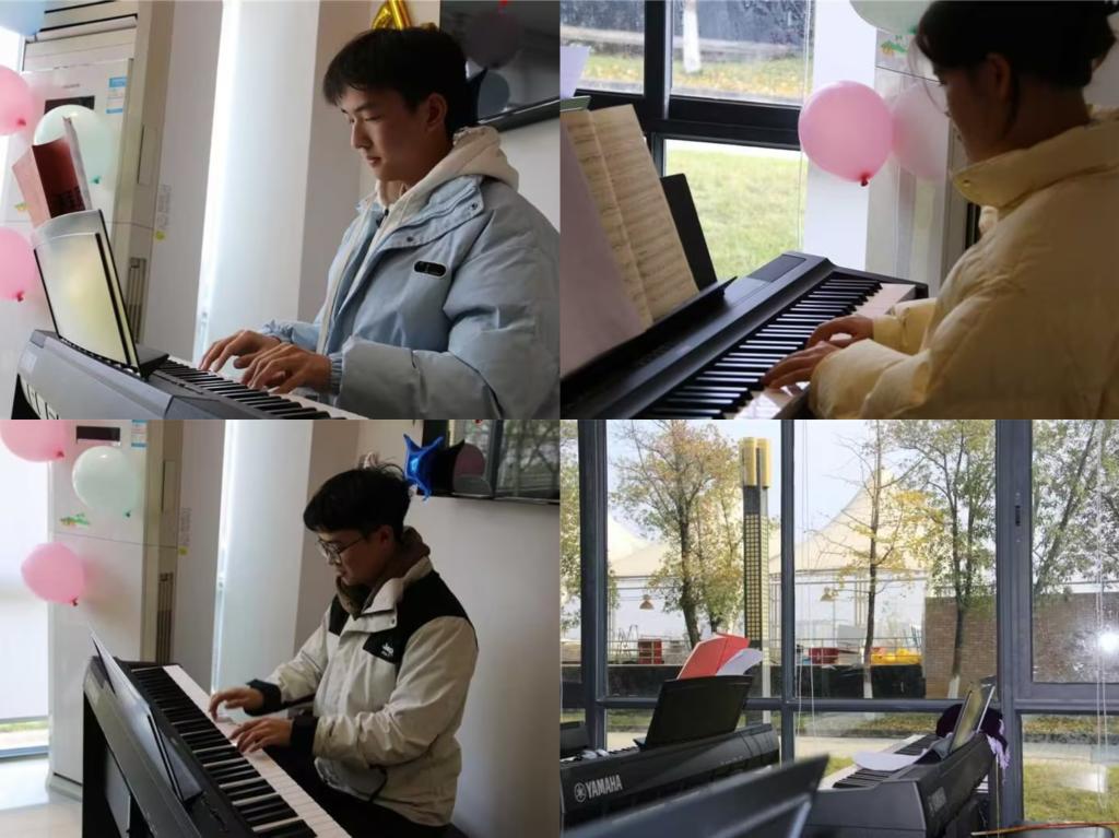 在学校支持下,通识与人文教育学院响应《关于全面加强和改进新时代学校美育工作的意见》,克服器乐课程资源不足的困难,引入智能电钢琴教学系统,开设 “理论 + 实践 + 展演” 一体化课程。通过 16 周系统学习,零基础学员完成从五线谱认知到独立演奏两首曲目的跨越,在《拜厄钢琴基础教程》训练中实现艺术素养的显著提升。